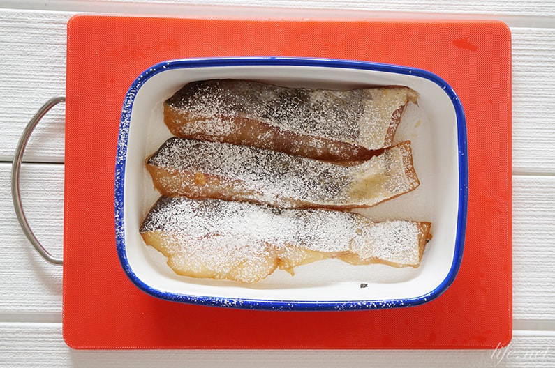 - Để cá có vị vừa ăn và khi nướng thơm hơn hay ướp một ít tiêu, bột ngọt, muối cho những miếng cá tuyết. Gia giảm cho phù hợp với bạn và gia đình.