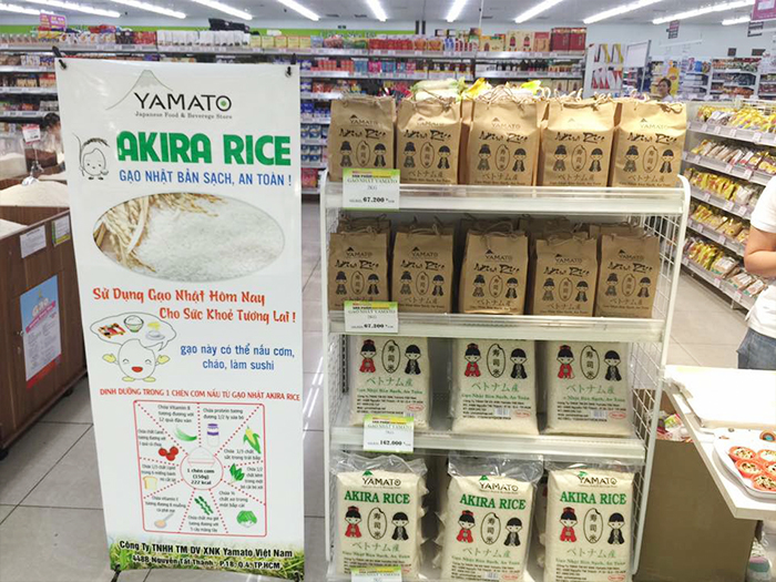 Gạo Nhật Akira Rice được bày bán trong các siêu thị