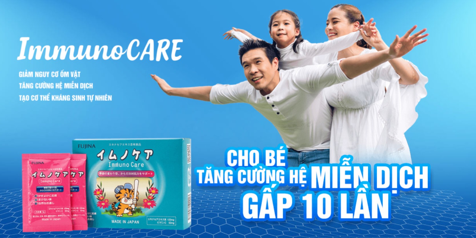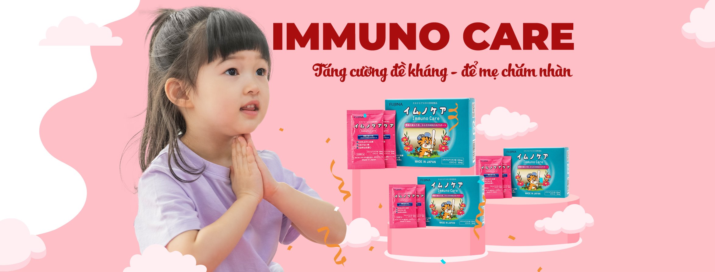 Cốm tăng cường hệ miễn dịch Fujina Immuno Care của Nhật có thành phần rễ cúc tím Echinacea và quýt xanh Onshu, tăng cường miễn dịch tự nhiên của trẻ gấp 10 lần thông thường, dành cho trẻ từ 1 tuổi trở lên.