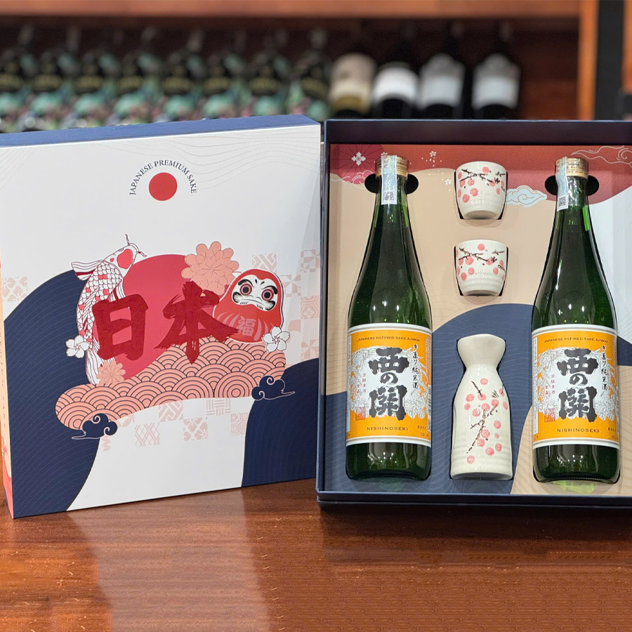 Hộp quà rượu sake Nishinoseki Junmai là món quà rượu tặng lễ tết mang hương vị rượu junmai Nhật Bản với vị dịu ngọt và nhẹ nhàng. Phù hợp làm thức uống ngon cho các buổi tiệc tùng năm mới, tiếp khách quý.