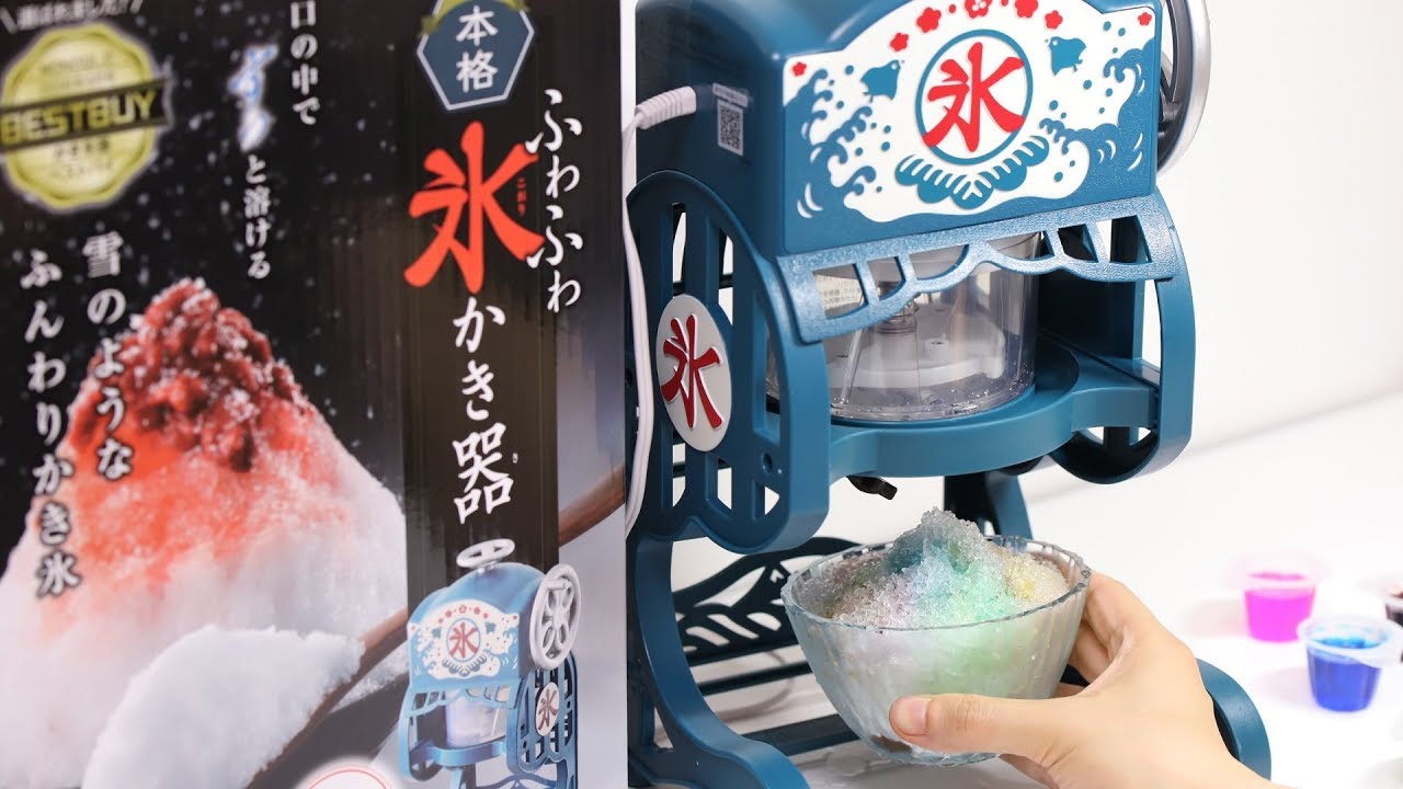 Bước 3: Dùng máy bào hoặc máy xay sinh tố để làm nhuyễn đá lạnh. Đảm bảo đá thật nhuyễn mịn, có như vậy món đá bào Kakigori mới “chuẩn Nhật”.