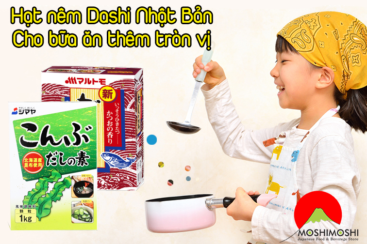 Chỉ cần cho nước vào và đun sôi sẽ tạo ra nước dùng dashi một cách hoàn hảo. Có các loại hạt nên khác nhau cho mọi người có thể lựa chọn thay đổi khẩu vị hàng ngày. Hạt nêm dashi gồm có 3 loại hạt nêm kombu Dashi (hạt nêm từ tảo bẹ kombu), hạt nêm Katsuo Dashi (hạt nêm từ cá bào hana katsuo), hạt nêm hỗn hợp (gồm kombu và katsuobushi).