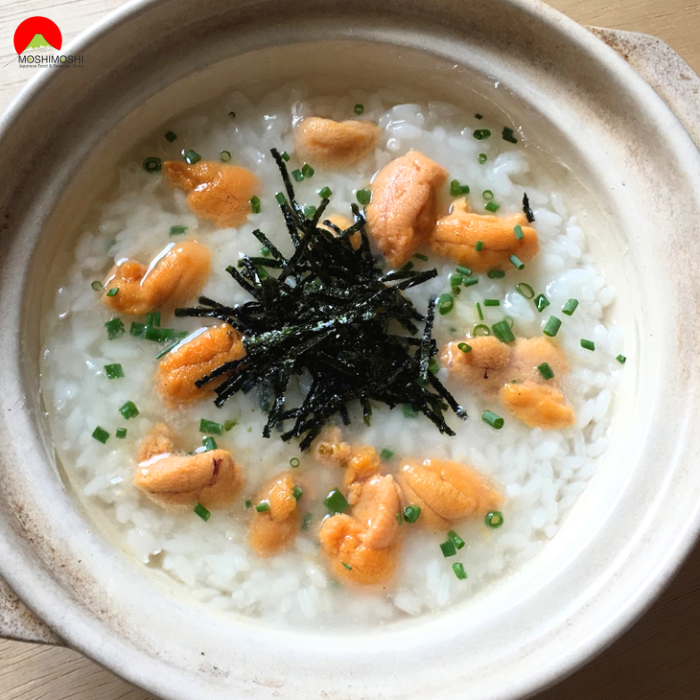 Nguyên liệu: Nhum biển Akajyo Narabi, gạo, nước dùng, hành lá, gia vị.