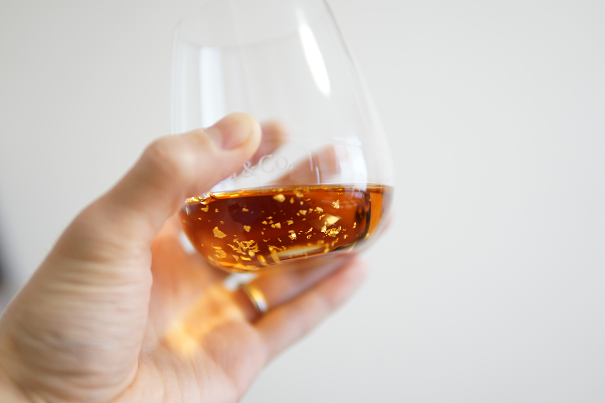 Khi rót rượu ra bạn sẽ thấy những Vảy vàng 23k lấp lánh. Đây là vảy vàng nhập khẩu từ Đức, được các chuyên gia sáng tạo với mục đích sử dụng trong ẩm thực. Và phiên bản Royal Umeshu năm Quý Mão 2023 cũng sử dụng công nghệ này để tăng thêm phần sang trọng. Làm quà biếu Tết thì còn gì bằng.