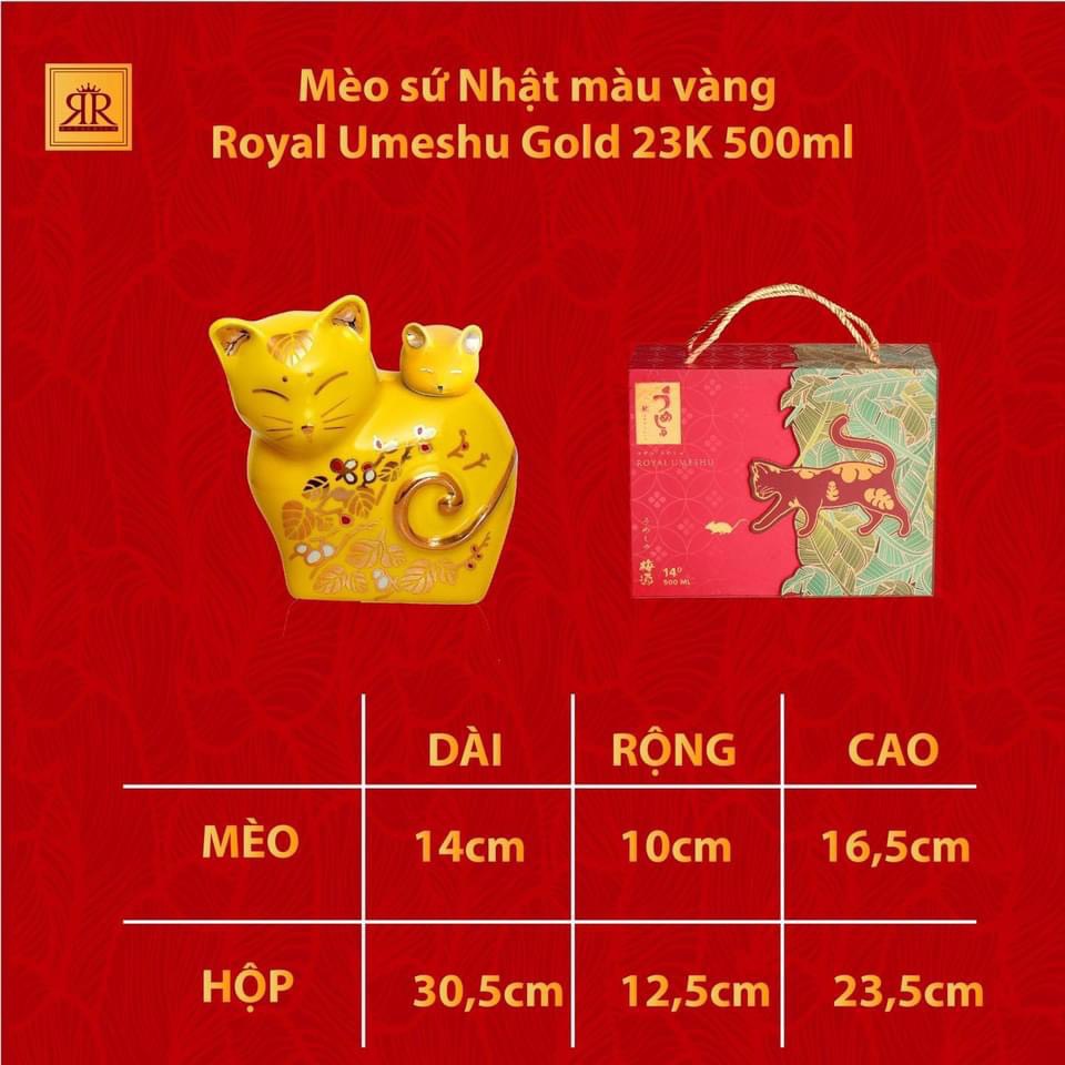 Năm 2023 sắp đến sẽ là Quý Mão, cầm tinh con mèo. Nếu như năm Mão ở Việt Nam là mèo thì ở Nhật lại là Thỏ. Tuy nhiên mèo lại là một loài rất được người Nhật Yêu thích, nó cũng chính là biểu tượng “chiêu tài” mà bất cứ cửa hàng nào ở xứ Hoa Anh Đào cũng phải có. Và sự kết hợp giữ hình ảnh mèo và rượu mơ Nhật Umeshu chính là 2 yếu tố tạo nên những chai rượu mèo Royal Umeshu trứ danh cho năm 2023.