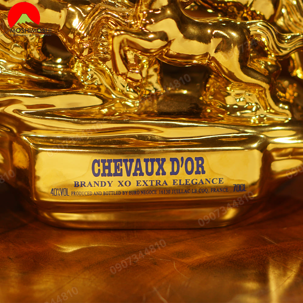 Ý tưởng xuất phát từ bức hoạ “BÁT TUẤN ĐỒ” hay dân gian còn gọi bằng cái tên khác “MÃ ĐÁO THÀNH CÔNG” từ thời Tây Chu – Trung Hoa. Hãng EURONEGOCE đã tạo tác ra rượu ngựa Chevaux D’or bằng sứ mạ vàng khắc hoạ hình ảnh tám chú ngựa đang tung vó thành công trở về.