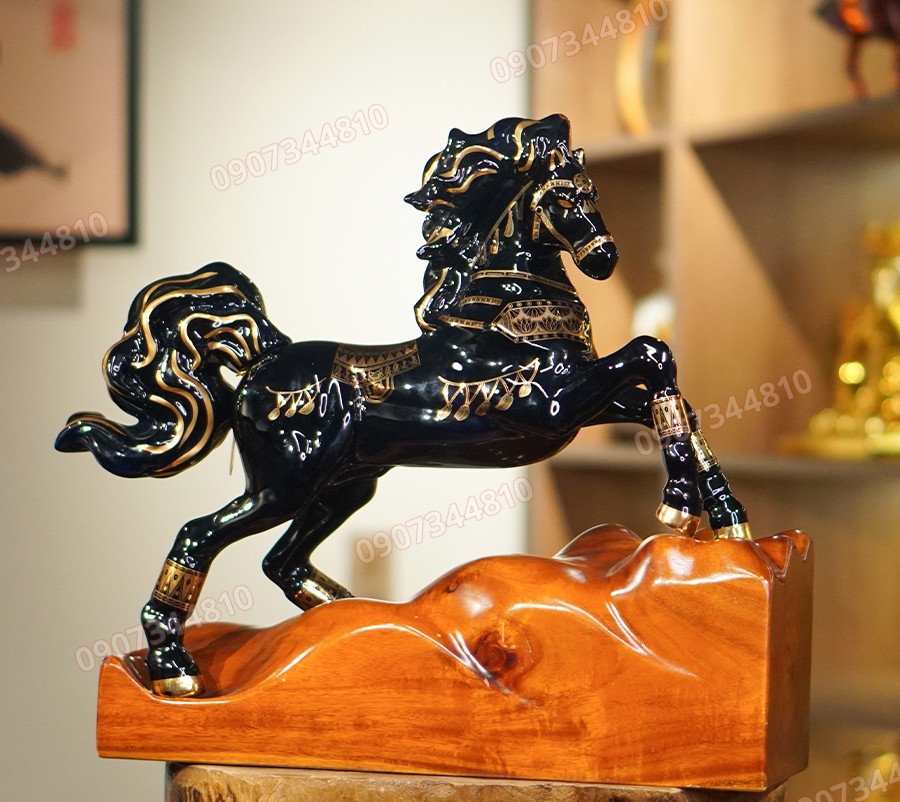 Tác phẩm Long Mã từ thương hiệu Doha nay trở nên nổi bật với phần đế gỗ chắc chắn được tạo hình giúp tượng ngựa đứng vững vàng và toát ra vẻ hùng dũng, oai vệ và quyền lực.