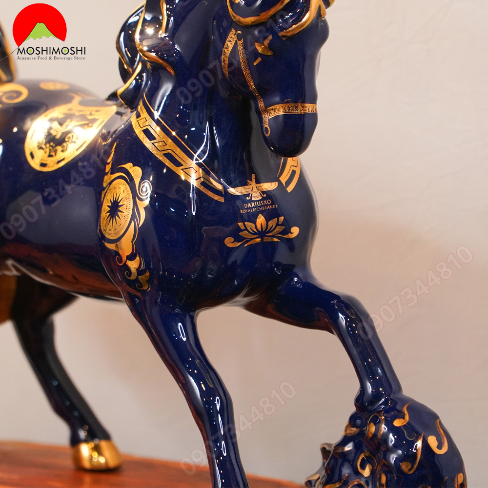 Tác phẩm rượu ngựa này được sản xuất với 2 màu sắc nổi bật là màu xanh dương bao trọn sản phẩm. Với các họa tiết hoa văn sắc vàng tô điểm thêm sự sang trọng và cuốn hút đẹp mắt. Ngựa được tạo hình tỉ mĩ, chân thật cùng một chân đạp mây tiến về trước.