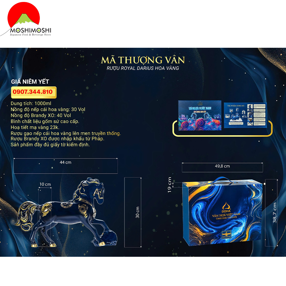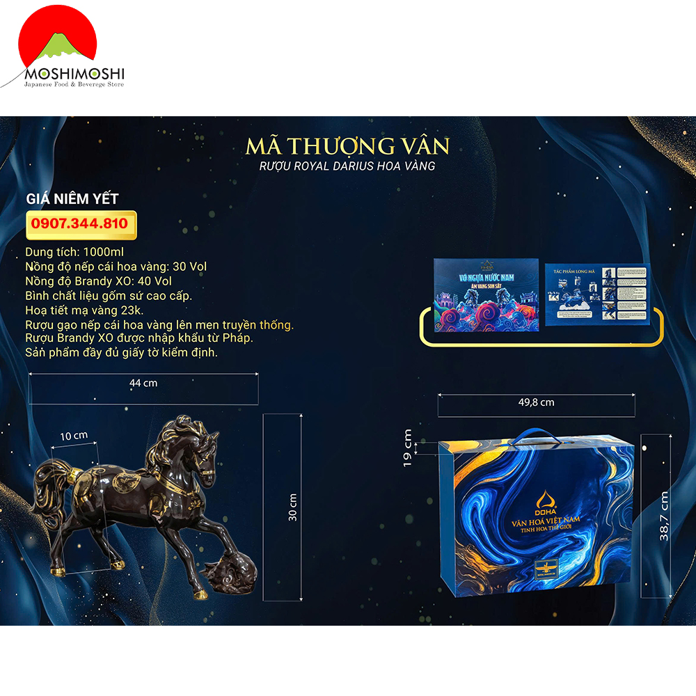 Moshi Moshi là đơn vị cung cấp các sản phẩm Rượu Linh Vật Tết qua nhiều năm với các mẫu rượu mèo 2023, rượu rồng 2024 và rượu rắn 2025. Rượu ngựa Mã Đáo Thành Công tại Moshi chính hãng Doha, có nhãn tem rượu nhập khẩu rõ ràng.