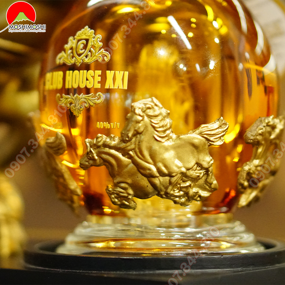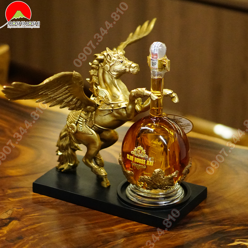 Đặt chiến mã cạnh bình rượu quý như đang canh giữ viên ngọc quý tỏa ra màu hổ phách sang trọng qua chất liệu thủy tinh. Bên trong là dòng rượu ngoại Brandy cao cấp từ vùng Cognac tại Pháp. Qua quá trình ủ lâu năm cho ra hương vị rượu hương gỗ sồi sâu lắng.