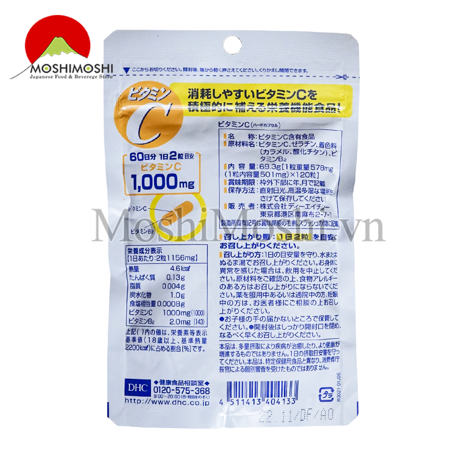 Ngoài sản phẩm uống Vitamin C DHC Nhật Bản tốt cho sức khỏe. Thì Moshi Moshi cũng hân hạnh được giới thiệu các sản phẩm thực phẩm chức năng được nhập khẩu từ nước Nhật, được sản xuất với công nghệ hàng đầu thế giới, giúp người dùng an tâm sử dụng. Để biết thêm thông tin về sản phẩm, quý khách có thể tham khảo tại Website: moshimoshi.vn hoặc có thể liên hệ Hotline: 0902.515.699 - 0909.245.123 để đặt hàng hoặc được tư vấn thêm. Được phụ vụ quý khách là niềm vinh hạnh của chúng tôi.
