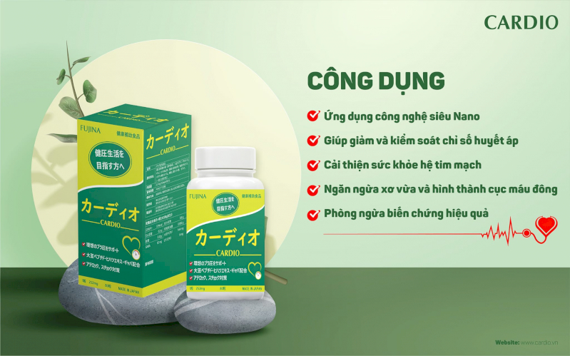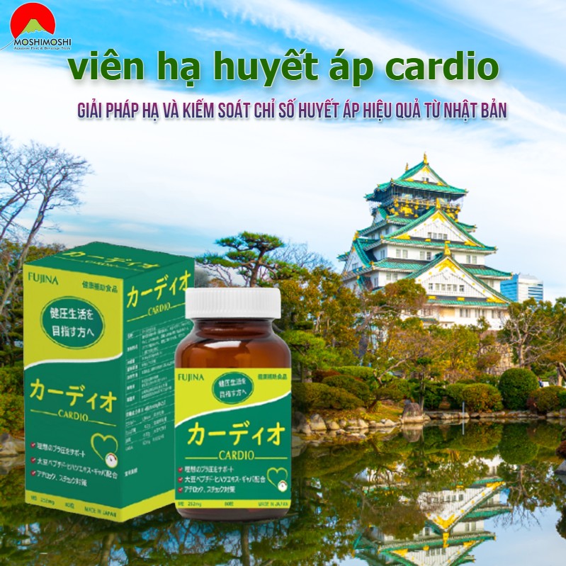 Viên uống hỗ trợ huyết áp Fujina Cardio là viên uống hỗ trợ giảm huyết áp có nguồn xuất xứ từ Nhật Bản. Với thành phần 100% thảo dược thiên nhiên trong nền y học cổ truyền Nhật Bản, có đầy đủ nghiên cứu lâm sàng chứng minh hiệu quả trong việc hỗ trợ hạ huyết áp và tăng cường sức khỏe cho hệ tim mạch, ngăn ngừa biến chứng do huyết áp cao gây ra.
